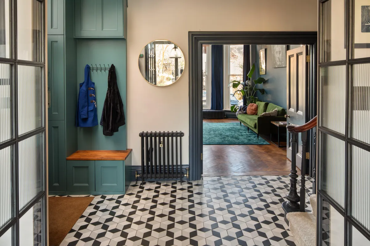 Bringing in the Light We installed high-specification Internorm large sliding doors across the rear. These maximise the natural light and create a seamless link to the garden. Internally, we used glazed partitions to connect the lounge to the hall and a large pocket door to separate the kitchen-diner, keeping the flow of light uninterrupted.